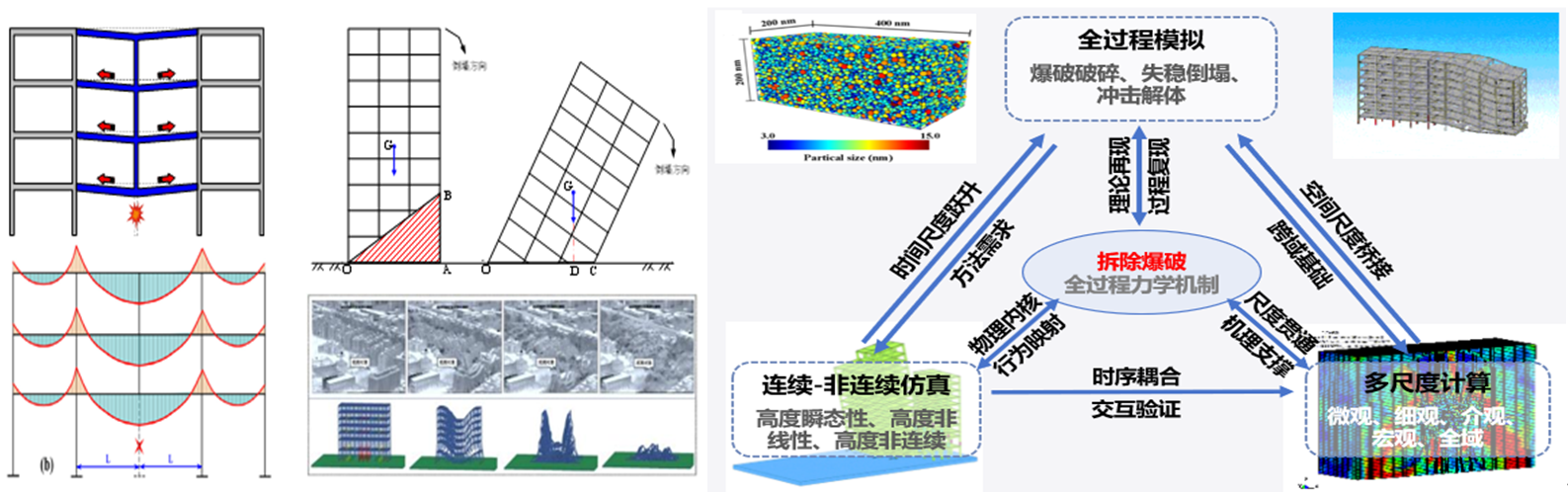 (1)建筑爆破拆除力学机制及全过程多尺度数值仿真