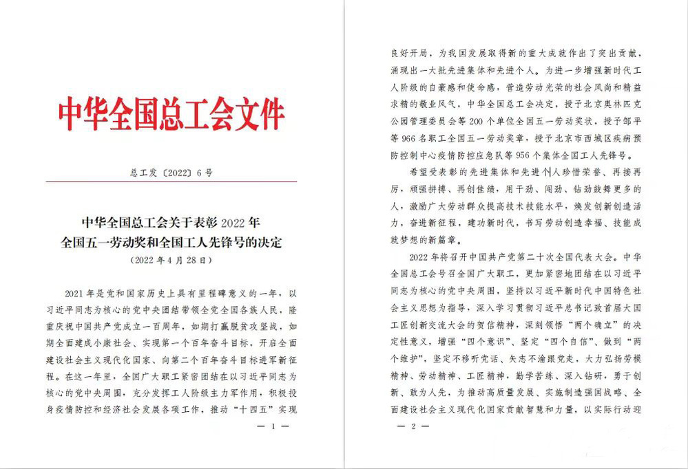全国五一劳动奖章和全国五一劳动奖状,是中华全国总工会授予在中国特色社会主义建设中做出突出贡献的劳动者和企事业单位、机关团体的光荣称号。