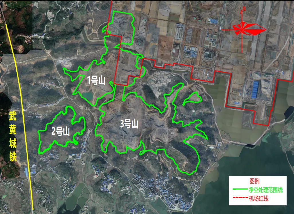 鄂州花湖机场净空区碍航山体降高项目平面图