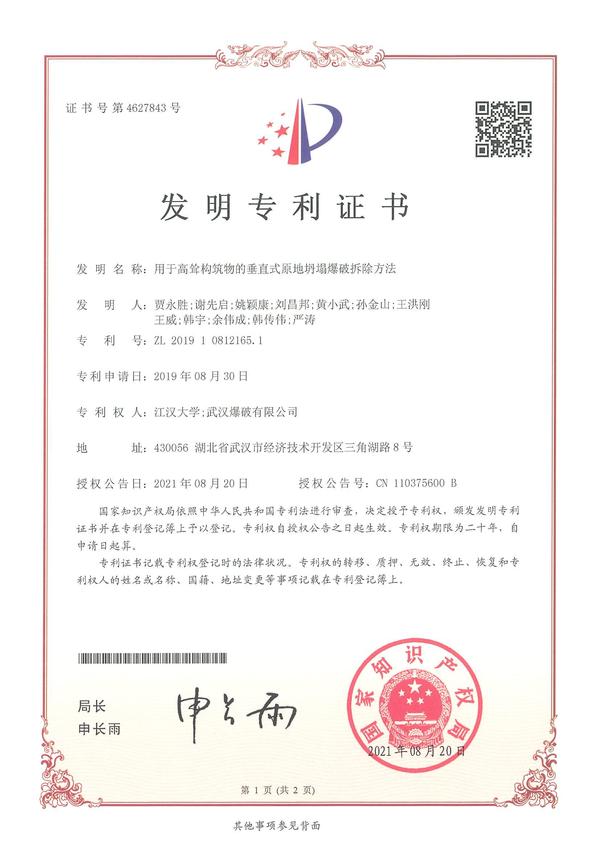 用于高耸构筑物的垂直式原地坍塌爆破拆除方法
