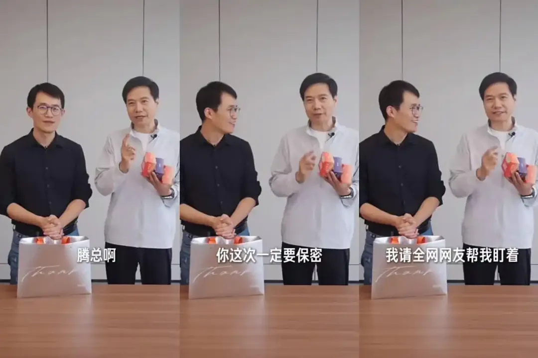 2024年8月,雷军曾在与王腾合拍的短视频中提醒:“你这次一定要保密”(图片来自抖音)