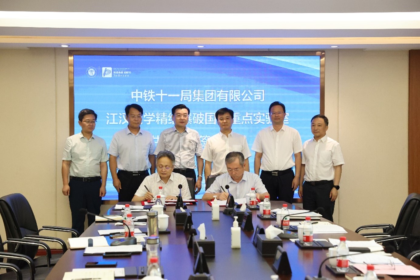 2022年7月21日下午,中铁十一局集团有限公司与江汉大学精细爆破国家重点实验室在江汉大学举行了共建合作签约仪式。仪式由江汉大学副校长、实验室常务副主任贾永胜主持,实验室主任谢先启院士、中铁十一局集团有限公司党委书记、董事长陈志明、总经理魏加志等领导出席签约仪式。