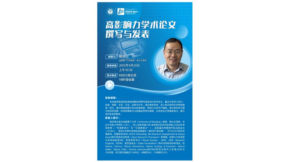 【预告】2025年4月29日(周二)博学论坛——杨洪教授:高影响力学术论文撰写与发表