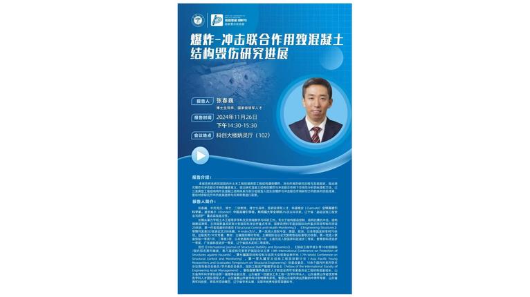 【预告】2024年11月26日(周二)博学论坛——张春巍教授《爆炸-冲击联合作用致混凝士结构毁伤研究进展》