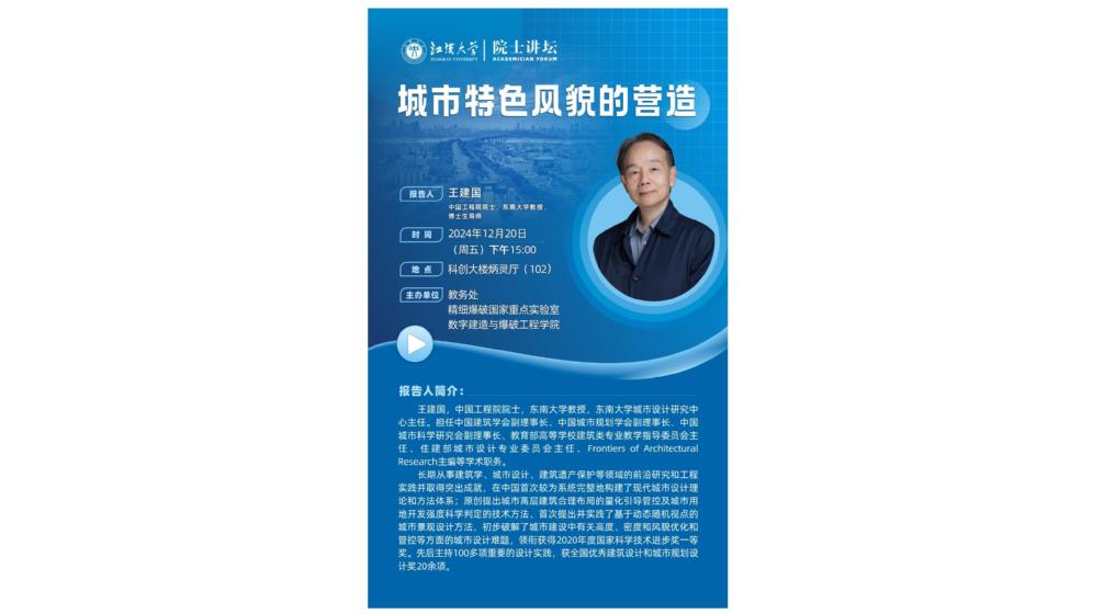 【预告】2024年12月20日(周五)院士讲坛——王建国院士:城市特色风貌的营造