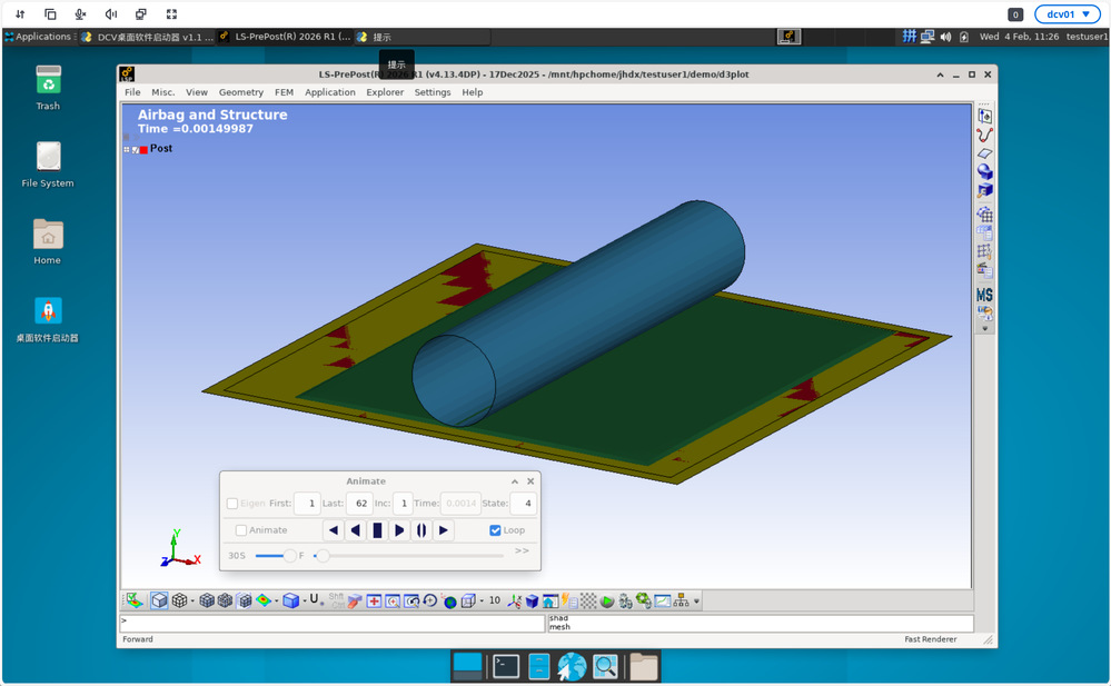 2026年2月9日,智算中心正式上线 Ansys LS-DYNA 500 核计算资源与DCV(Desktop Cloud Visualization)高性能可视化节点平台。该平台将进一步增强大规模工程仿真与科学计算能力,为爆炸模拟、冲击分析等研究方向提供有力工具支撑。