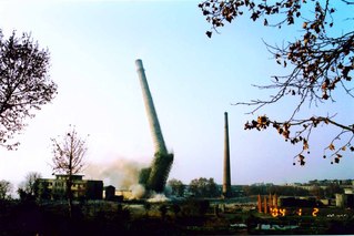 武汉阳逻100m钢筋混凝土烟囱“定向双次折叠”爆破拆除工程