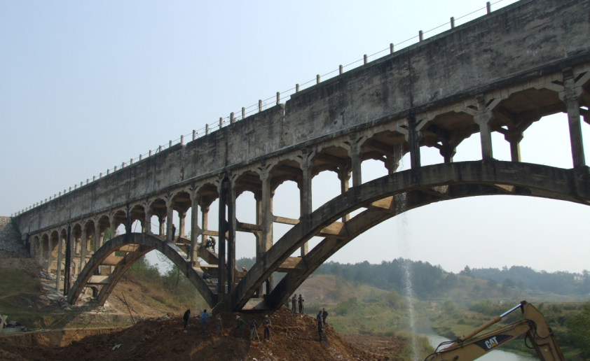 爆破技术​:采用“机械破碎削弱刚度与爆破拆除相结合”的总体方案,爆破切口设置在拱顶两边露出水面的拱圈和斜杆上,采用孔内外微差接力的起爆网路,实现整个桥梁失稳坍塌解体破坏。