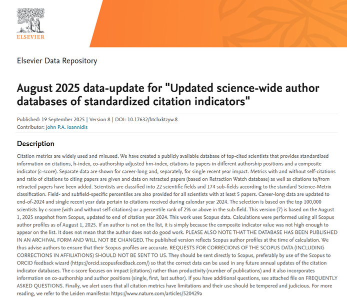 Recently, Stanford University and the internationally renowned academic publisher Elsevier jointly released the 2025Worlds Top 2% Scient...